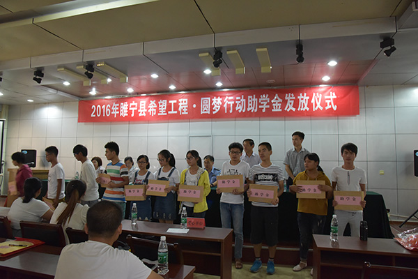 8月26日 ,睢宁县2016年希望工程·圆梦行动助学金发放仪式在睢宁县卫计委聚会室举行 。77体育药业团委为10位难题家庭的高考子女送去了助学金 。